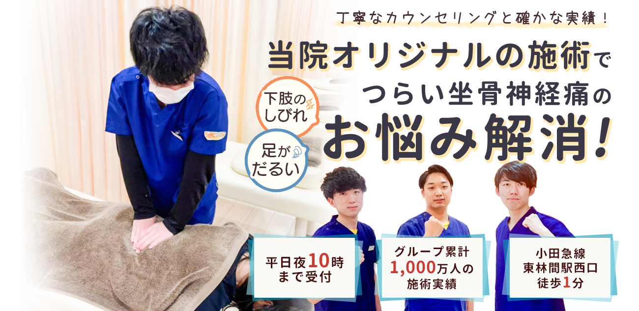 坐骨神経痛は、誰でも発症の可能性がある病気です。そのため、症状について理解してリスクに備えておくことが大切です。当院ではお客様に合った施術方法を丁寧なカウンセリングのもとご提案させていただきます。辛い痛みでお悩みの方は、ぜひ東林間駅前接骨院にお問い合わせください。